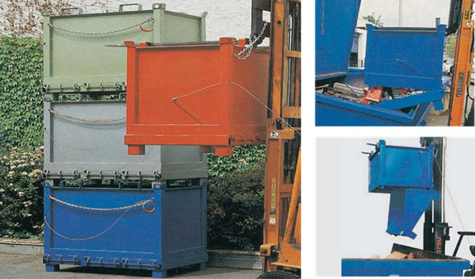 鐵屑箱也亦用自卸式結(jié)構(gòu),配合叉車使用,人只要座在叉車上一拉扣環(huán),即可實(shí)現(xiàn)傾倒垃圾,由于底部傾卸結(jié)構(gòu),可保證垃圾傾倒干凈,還可實(shí)現(xiàn)可堆垛功能。所有鐵卸箱均可選配腳輪,使其為叉車移動兩用型。