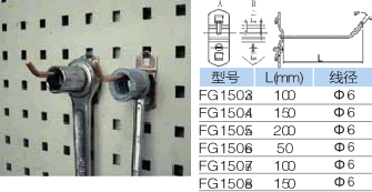 掛鉤可穩(wěn)定地固定到方孔掛板上,能承受較重的物品。 |