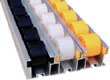 2、標(biāo)準(zhǔn)的滾輪規(guī)格為Φ34×24.5mm,滾輪中心距為41.5mm,每米滾道有22個ABS滾輪。