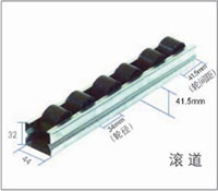 3、金屬滾道架是由厚度為1mm的鍍鋅鋼板制成。規(guī)格為44W×32Hmm;滾道含滾輪的總高為41.5mm。